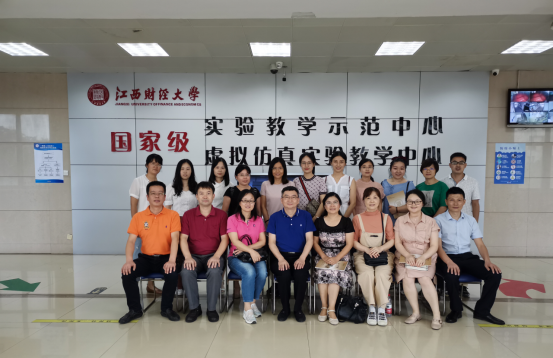 随后,吴志斌副主任带领会计第二公司教师们参观江西财经大学国家级经济管理与创业模拟实验中心。江西财经大学经济管理与创业模拟实验中心于2014年入选了国家级虚拟仿真实验教学中心,在经济管理类实验教学方面具有先进的建设与管理经验。