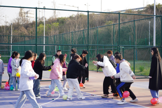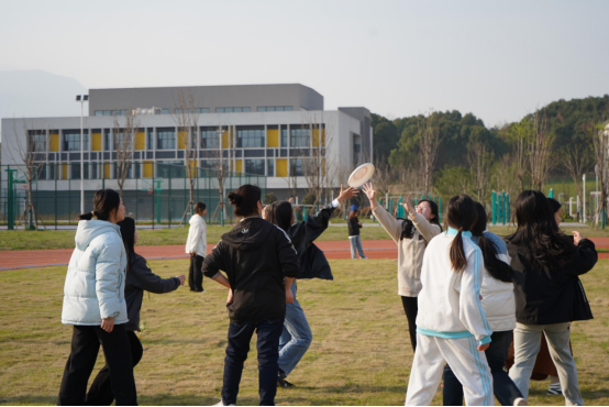 在晨跑结束后,进行了飞盘和踩气球等趣味素质拓展活动。