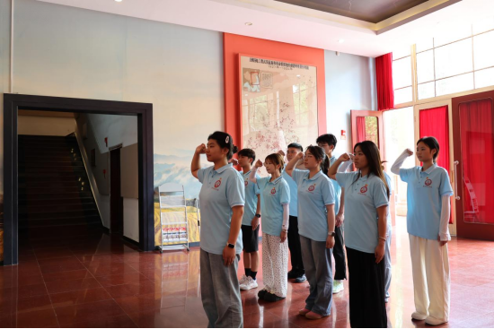 “我志愿加入中国共产主义青年团,坚决拥护中国共产党的领导,遵守团的章程,执行团的决议,履行团员义务,严守团的纪律……”,纪念馆大厅中回声嘹亮,实践队队员们面向党旗,高举右手,重温入团誓词,向革命先烈们展现青年一代为国争光的决心与信仰。