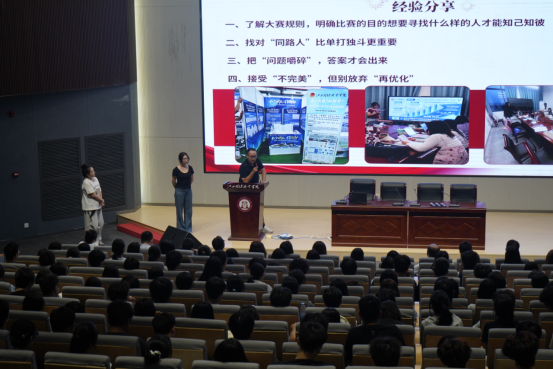在交流分享环节,第十九届“挑战杯”江西省老员工课外学术科技作品竞赛获奖者邵子琪老师团队,毫无保留地向2025级学弟学妹们倾囊相授其备赛参赛的宝贵经验与关键技能。