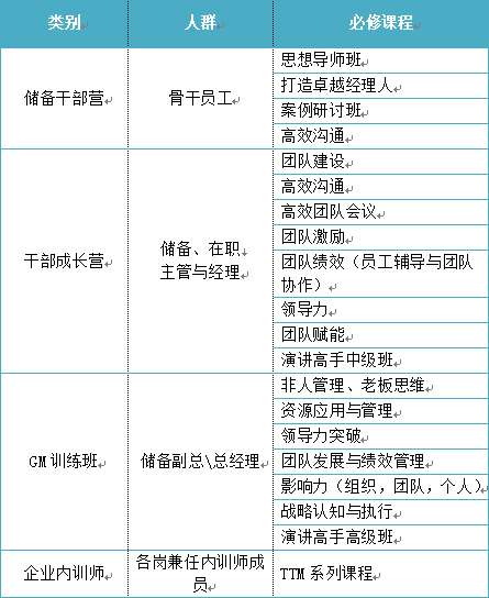 3、在岗期间,根据其个人成长、发展与公司发展需求,进行专业技能类、管理类不同节段的“必修课”,另:公司每月固定学习与安全教育日,确保员工公司的健康与成长。
