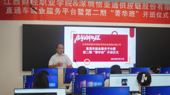 2024年9月27日下午,betway西汉姆联官方官网在八里湖新校区一教519供应链运营实训室三举行betway西汉姆联官方官网&深圳市怡亚通供应链公司直通车就业服务平台暨第二期“菁华班”开班仪式。出席仪式的有:数字经济公司党政班子、骨干教师、深圳怡亚通教育发展有限公司产品研发总监史剑、第一期“菁华班”优秀员工代表尹小艳和本期“菁华班”员工。